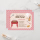 Invite a su familia y amigos a una clásica fiesta de barbacoa en su patio trasero con esta invitación. Ideal para cumpleaños o simplemente una cena de reunión para relajarse en verano. La invitación presenta una parrilla antigua, herramientas de cocina, comida como bistec, pollo y champiñones, salsa de barbacoa y un sombrero de cocinero. Fondo con patrón de cuadros rojos. Personalice con los detalles de su fiesta.