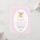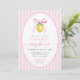 Celebra la próxima llegada de tu pequeño con esta adorable invitación de baby shower coquette de limón. Con un encantador fondo a rayas rosadas y un dulce limón de acuarela con un lazo rosa, este diseño es perfecto para un baby shower de primavera o verano. La fuente de escritura elegante añade un toque de sofisticación, mientras que el motivo del limón juguetón trae un ambiente alegre. Esta invitación seguramente establecerá un tono delicioso para tu celebración especial e impresionará a tus invitados con su diseño único y encantador. Anuncia tu evento alegre con esta hermosamente diseñada invitación con tema de exprimir el día.