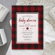 Invitación Fiesta de Bebé de Cuadros de Leñador Rojo y Negro