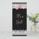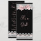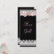 Hermosa invitación de fiesta de bebé niña con encaje blanco, lazo de encaje rosa y lazo rosa, y tema rosa y negro.