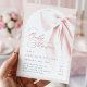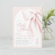 Invitación elegante para la fiesta de bebé con lazo rosa. Esta invitación elegante cuenta con un encantador lazo rosa suave y una escritura a mano romántica, perfecta para una caprichosa fiesta de bebé niña. La cinta elegante y el diseño clásico añaden un toque de sofisticación, mientras que la plantilla editable permite una fácil personalización. Crea una invitación hermosa y memorable para tu evento especial.