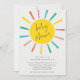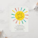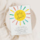 Una Invitación de Fiesta de Bebé Moderna con Guión Sol Arcoíris con sol colorido y guión manuscrito. Haga clic en el botón de edición para personalizar este diseño con sus detalles.