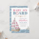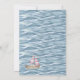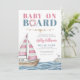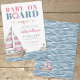 ¡Bebé a bordo! Prepárense los sombreros de capitán y zarpen hacia un dulce baby shower náutico. Este diseño presenta un velero azul y blanco con una franja rosa, flotando en medio de un océano tranquilo, completo con una gaviota amistosa posada en una roca, acentos de cuerda juguetones y un clásico aro de salvavidas rosa inteligentemente colocado dentro de la palabra "Board". La parte delantera establece la escena con su encanto oceánico, mientras que la parte trasera incluye un patrón de agua y un pequeño detalle de velero para un acabado coordinado.