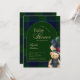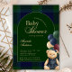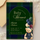 Invitación Verde y Azul Marino para Fiesta de Bebé Niña de Lujo Oso de Peluche Polo Elegante Clásico Formal