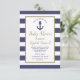 Invitación Fiesta de bebé niño de rayas azules marinas ancla