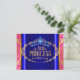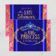 Invitación de baby shower india con hermoso damasco azul real zafiro, rosa intenso magenta y dorado y tiara de diamantes princesa. Esta colorida invitación de baby shower bohemio chic marroquí Bollywood se personaliza fácilmente para su evento agregando sus detalles en el estilo de fuente y color y redacción de su elección.