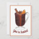 La invitación incluye una ilustración original de una taza de vino caliente con anís estrellado, naranja y ramas de canela. Personaliza con tu información para una invitación única de inauguración, casa abierta, fiestas o bienvenida a casa.