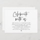 Tarjeta de invitación de boda a escondidas con tema de letra negra moderna (celebra con nosotros). Es perfecta para su recepción de boda a escondidas / fiesta de celebración post-boda. Agregue sus detalles en fuente / letra negra coincidente.
