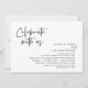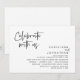 Moderno diseño con letra Script negra, tarjeta de invitación de boda a escondidas (celebra con nosotros). Es perfecta para su recepción de boda a escondidas / fiesta de celebración post boda. Agregue sus detalles en fuente / letra negra coincidente.