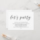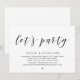 Moderna tarjeta de invitación de boda con tema de escritura en negro (¡Vamos a la fiesta). Es perfecta para su recepción de boda a escondidas / celebración de post boda. Agregue sus detalles en fuente / letra negra a juego.