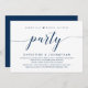 Hermoso anuncio de boda de Elopement, tarjeta de invitación de guión azul marino elegante y clásico (Fiesta Felices para Siempre). Esto es perfecto para su recepción de boda y fiesta de celebración post-boda. Agregue sus detalles en letra / letra coincidente.
