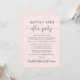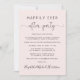 Elegante invitación de elopement rosa claro o anuncio de boda privada y recepción de boda o invitación a la fiesta de celebración. En la parte delantera, "Fiesta Felices para siempre" está escrito en una mezcla de tipografía simple y una elegante escritura con florituras, y puedes personalizar tu mensaje e invitación con más detalle y agregar tus nombres en una escritura similar a una firma. La parte posterior presenta tus nombres y fechas de boda y recepción.