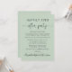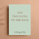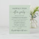 Elegante invitación de boda o elopement en verde salvia o anuncio de recepción o fiesta de celebración. "Fiesta Felices para Siempre" está escrito en una mezcla de tipografía simple y una elegante letra con florituras, y puedes personalizar tu mensaje e invitación con más detalle y agregar tus nombres en una firma como letra. El reverso presenta tus nombres y fechas de boda y recepción.