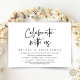 Tarjeta de invitación de boda con tema de letra moderna (Celebren con nosotros). Es perfecta para su cena de boda informal a orillas del lago, baile y fiesta.