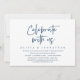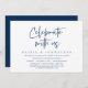 Tarjeta de invitación de boda con tema de escritura en azul marino moderno (Celebra con nosotros). Es perfecta para su cena de boda íntima y casual junto al lago, baile y fiesta.