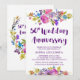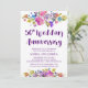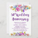 Esta tarjeta de invitación de aniversario de bodas de 50 años del jardín de ciruela púrpura es perfecta para una fiesta de aniversario con tema floral. El diseño presenta flores brillantes magenta, rosa, ciruela púrpura y azul, y una fuente de letra script en negrita encantadora. La parte posterior presenta una guirnalda floral.