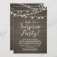 ¡Celebra tu día especial con esta invitación de fiesta sorpresa rústica! Este diseño presenta una tipografía de escritura elegante y cuerdas de luces sobre un fondo de madera rústica. Perfecto para una fiesta en el jardín, una fiesta en un granero o cualquier fiesta sorpresa.
