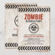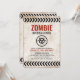 Invitación con aspecto vintage para una fiesta temática de brote de zombi con elementos oxidados.