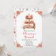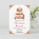 Esta elegante y festiva invitación de brunch navideño presenta un soporte de pastel con galletas de jengibre, macarons, dulces, cacao caliente y una tetera. En las esquinas hay hermosas flores de poinsettia rojas. El texto combina fuentes manuscritas y sans serif para un look elegante y moderno. Esto es perfecto para un brunch de Navidad o una fiesta de té.