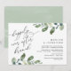Hermoso diseño romántico moderno, en tema de acuarela de hojas de eucalipto verdes, Anuncio de Elopamiento de Boda, Tarjeta de invitación (Brunch de Después de la Boda). Esto es perfecto para la recepción de su boda y la fiesta de celebración después de la boda. Agregue los detalles de su celebración de brunch / cena de elopamiento. #TeeshaDerrick