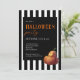 Invitación Fiesta de calabaza franja blanca y negra de Hallow