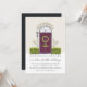 La encantadora invitación a una fiesta de limpieza para las vacaciones incluye un ilustracion de puertas de ciruela morada flanqueado con arbustos verdes y una corona de Navidades, con "nuevo hogar para las vacaciones" en moda manuscrita escrita. Personalice los detalles de la celebración que se encuentran debajo.