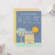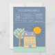 Fiesta de calentamiento de la casa - nuevas invitaciones a casa de Ricaso - con una pequeña casa amarilla al lado de un árbol con el sol en el cielo azul