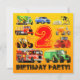 Nueve camiones de colores vivos rodean un gran número 2! ¡Agrega tu propia edad! Mezclador de cemento verde y amarillo, camioneta azul, bulldozer amarillo, camión de naranja, rodillo rojo, tractor verde y remolque, gran camión de bomberos rojo, excavador amarillo y camión rojo de la constructora. Todo tipo de transporte, los grandes camiones que los niños aman! Perfecto para su camión de bomberos, excavadora, camión o tractor loco de 2 años en su segundo cumpleaños. Maravilloso para tu Fiesta de 2 años. Modernas fiestas de cumpleaños, accesorios, favores y regalos para fiestas infantiles y para niños. Todos los ilustraciones de camiones ©Paul Stickland