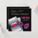 Invitación de cumpleaños personalizada para una noche de casino con tema de Las Vegas en rosa caliente, púrpura, negro y plateado. Esta es una invitación personalizada. Si desea este diseño para usted, por favor contacte al diseñador: cheryl@cheryldanielsart.com. También están disponibles servilletas de cóctel a juego, favores de imán de fichas de casino, fichas de póquer y más productos. "Noche de Casino de Las Vegas" - obra de arte y diseño original de Cheryl Daniels © 2015.