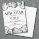Invitación a la Fiesta de Celebración de Fin de Año en Negro y Blanco. Celebre Fin de Año con estilo con esta elegante Invitación a la Celebración de Fin de Año en Negro y Blanco. Con un fondo blanco crujiente, este diseño está acentuado con bolas de discoteca grises en negrita en la parte superior y bolas de discoteca más pequeñas en la parte inferior de la parte delantera para un toque festivo. La invitación utiliza fuentes clásicas negras y grises en estilos serif en negrita para mantener el aspecto moderno y sofisticado, sin brillo real, creando un ambiente brillante perfecto para una fiesta de Fin de Año. La parte trasera se deja blanca lisa para un acabado elegante. Con colores de texto totalmente personalizables, puede ajustar este diseño para que se adapte al tema de su evento. Ideal para una celebración chic de Fin de Año, un conteo regresivo a medianoche o una reunión animada con amigos