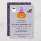 Esta es para cualquier persona que tenga un cumpleaños antes o el día de Halloween, y se puede utilizar para personas de todas las edades a pesar de algunos de los elementos que parecen lindos presentes. El enfoque principal de esta es la jack-o-lantern que lleva un sombrero de fiesta. Esta tarjeta cuenta con elementos personalizables que se pueden modificar utilizando el botón azul "Personalizar este diseño". Puede cambiar el nombre y la edad de la persona, la fecha y hora de la fiesta, la ubicación de la fiesta y la información de RSVP.