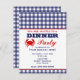 Invitación Fiesta de Cena Azul a Cuadros y Cangrejo