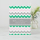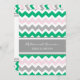 Personalizado ensayo invitaciones a cenas en modernos y elegantes tramos de chevron verde brillante, rosa claro, gris y blanco. Personalice el texto para crear una invitación única para su cena de ensayo boda. Póngase en contacto con nosotros para solicitar un cambio de color. Disponible en muchos productos bodas a juego.