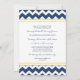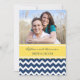 Personalizado plantilla de fotos ensayo cena invitaciones a fiesta en moderno y elegante color amarillo limón amarillo, azul marino oscuro y blanco divertido patrón chevron zigzags. Personalice el texto para crear una invitación única para su cena de ensayo boda. Póngase en contacto con nosotros para solicitar un cambio de color. Disponible en muchos productos bodas a juego.