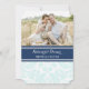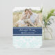 planilla de fotografía personalizado para el ensayo de invitaciones a cenas en azul cielo azul turquesa claro moderno y elegante, moda azul marino oscuro y blanco y patrón vintage floral de damasco clásico. Personalice el texto para crear una invitación única para su cena de ensayo boda. Contáctenos para solicitar un cambio de color. Disponible en muchos productos bodas coincidentes.