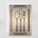 Invite a sus huéspedes de la cena en estilo con esta invitación simple y elegante. Esta invitación tiene una pendiente metálica del bronce de la mirada con una línea frontera moderna en negro. En el centro hay un bosquejo de una cuchara, de un cuchillo, y de una bifurcación. La parte posterior tiene un fondo a juego y un lugar para su fraseología de encargo de la invitación. Cambie los detalles para adaptarse a su acontecimiento. Todos los elementos se imprimen en nuestros productos de alta calidad, ellos no incluyen ningunos elementos reales del oro, de las joyas, de la grabación en relieve, u otro de la materia textil. Todos los diseños son derechos reservados Notable Expressions, Inc. todos los derechos reservados.