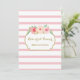Las invitaciones adaptables del fiesta de cena del ensayo de la plantilla en modelo color de rosa ligero del rosa y blanco de las rayas con los detalles del oro y la acuarela rosada del vintage florece.