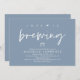 Anuncie su alegre estilo de siempre con nuestro moderno diseño de temática azul polvoriento (el amor se está preparando) tarjeta de invitación a la celebración de la ducha de novia. Con un diseño sofisticado pero lúdico, con un pequeño corazón de amor y un icono gráfico que aísla el cristal de cerveza, esta invitación seguramente marcará el tono para un evento inolvidable. La tarjeta de invitación cuenta con un moderno diseño de escritura minimalista, añadiendo un toque de elegancia intemporal a su celebración. Diseñado por TeeshaDerrick