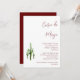 Elegante invitación de fiesta de Cinco de Mayo, con un diseño de cactus verde sobre fondo blanco. Con letras rojas personalizables, puedes agregar tu propia información. Una invitación botánica festiva para tu celebración.