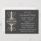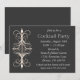 Invitación a fiesta de cocktail adornada en negro, dorado y blanco.