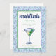 Invitación Fiesta de Cóctel Azul Preppy Zebra Martini