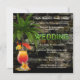 Una recepción de boda caprichosa o invitación posterior a la boda con un cóctel tropical con palmera en un fondo de pared de piedra oscura. Las letras de neón que dicen "Boda" se pueden arrastrar o eliminar. En el editor avanzado también puede elegir un texto de neón que diga "Celebrar" (en la parte inferior de todos los archivos de texto e imagen). Hermoso para una pareja que no quiere una celebración de boda tradicional.