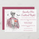 Disfrute de una elegante velada con nuestra invitación "Spooky Moda Skeleton Night". Un esqueleto de dapper con traje rosado da ganas de un glamuroso fiesta de cócteles de Halloween. Perfecto para modas, reuniones para adultos y celebraciones gótico-glam. Personalizable completo con los detalles de su evento.