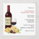 Un hermoso y minimalista ilustracion de una botella de vino tinto que tiene el tema de su evento; un vaso de vino tinto; rodajas de queso Edam; trufas de chocolate exótico y brotes de romero que bordean el borde izquierdo.