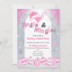 Estilo retro vintage Pink and Grey Jingle & Mingle Holiday Party Invitation - Un cóctel rosa dulce con salchicha rosa y Sombrero Santa. En la parte de abajo hay adornos de navidad en tonos rosas y grises. Un fondo gris y rosa resplandeciente. Perfecto para fiestas de Navidades adultos y se reúnen para celebrar la temporada navideña. Disponible como descarga digital instantánea perfecta para enviarla por correo electrónico, texto, medios sociales y para la planificación de fiestas de último minuto.