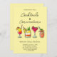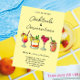 Invitación divertida a una fiesta de cócteles y conversación para un evento de destino con ilustración de coloridas bebidas de cóctel tropical.