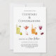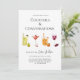 Invitación de fiesta de cócteles divertidos y conversación para un evento de destino con ilustración de coloridas bebidas de cóctel tropical.