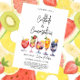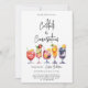 Invitación divertida a una fiesta de cócteles y conversación para un evento en un destino con ilustración de coloridas bebidas de cóctel tropicales.