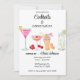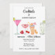 Divertida invitación a la fiesta de cócteles y conversación para un evento de destino con ilustración de coloridas bebidas de cóctel tropical.
