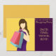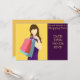 Una invitación linda y elegante adecuada para un día de chicas o una fiesta de compras o una juerga de compras para despedida de soltera. Esta invitación elegante presenta una chica de moda gráfica divertida contra un fondo funky de color mostaza brillante y púrpura. El texto es totalmente personalizable para incluir detalles personales.